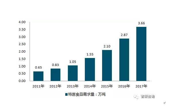 2011~2017 中國特醫(yī)食品行業(yè)需求量情況▲